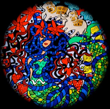 Acrylic on canvas with sequins and varnish 20x20