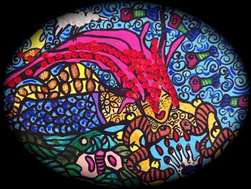 Acrylic on canvas with sequins and varnish 6x8